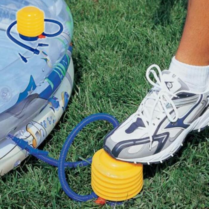 Kolam renang portable biasanya diisi angin sebelum menggunakannya karena penopang kolam ini adalah angin.