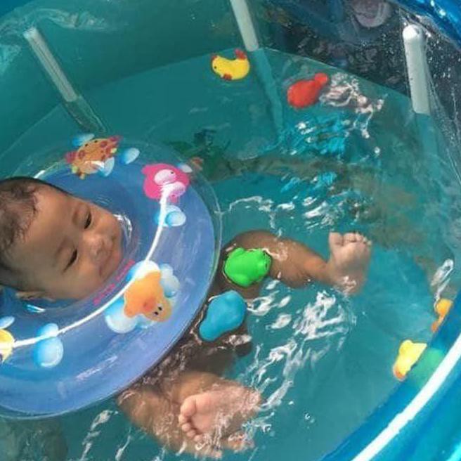 #masyaalloh iya happy time with baby khal 👶👶🤽.